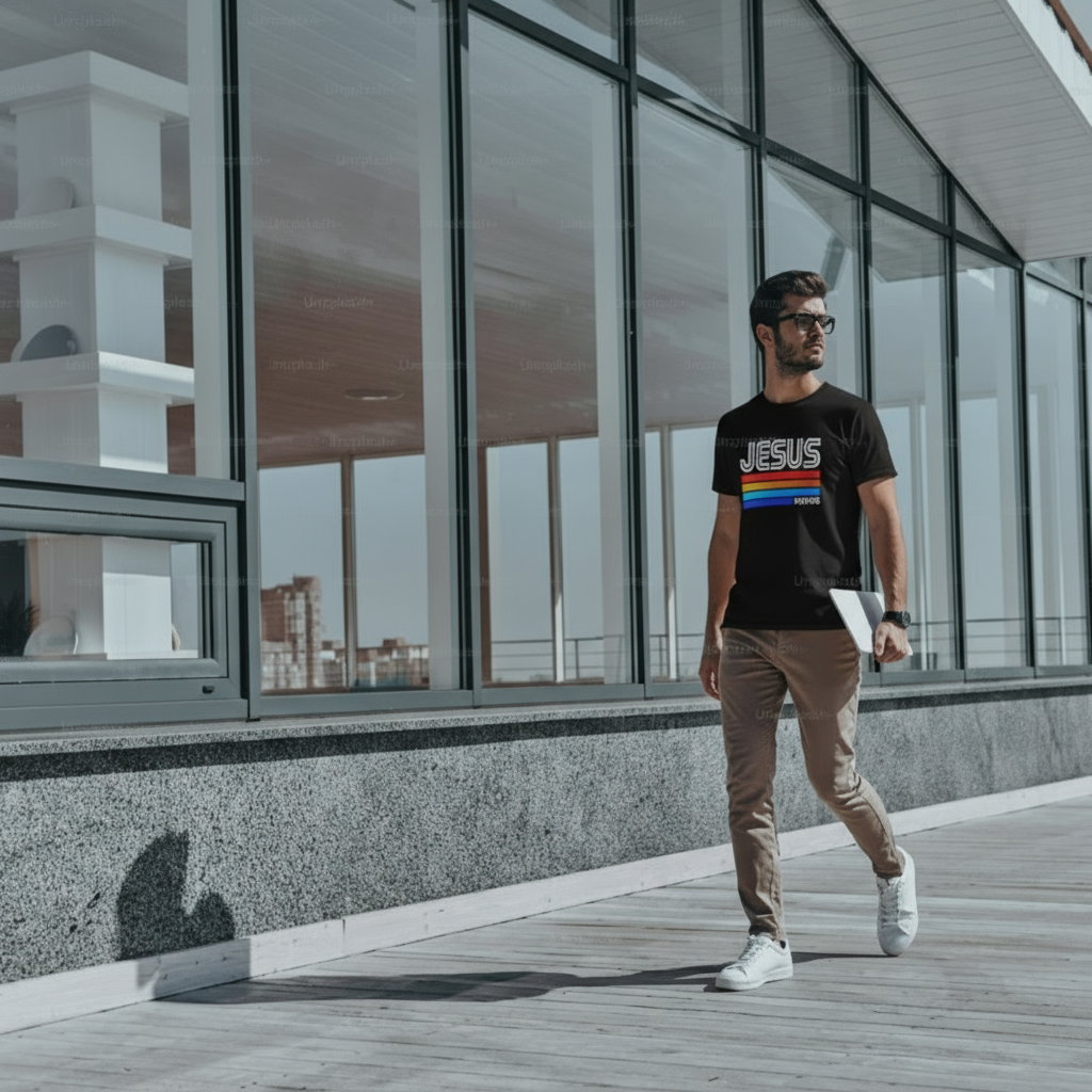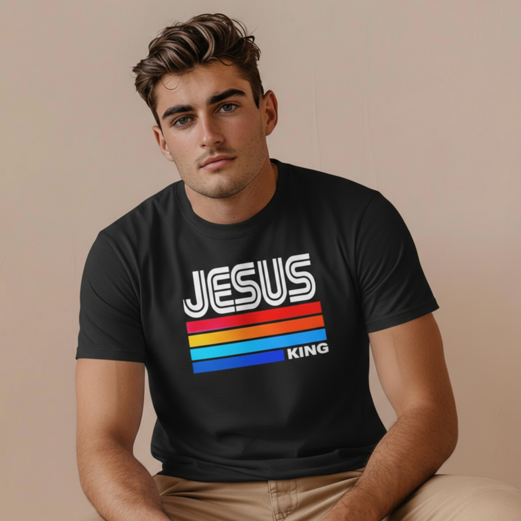 Wear your faith loud and proud with this eye-catching retro-inspired design. Combining timeless truth with sleek fashion, this tee makes a statement that's both stylish and spiritually bold.
